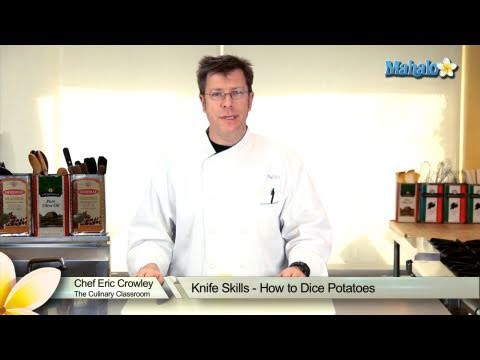 Knife Skills - How to Dice Potatoes - How To Dice Potatoes - Learn Piano App FREE: http://bit.ly/pianoHD Mahalo cooking expert Eric Crowley explains the best way to dice potatoes. Ingredients and Equipment ...