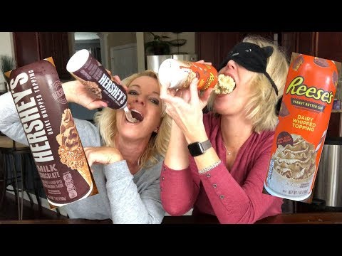 Reeses Peanut Butter Squirty Cream }}- They are finally in stores....Hershey's and Reese's Peanut Butter Cup Whipped Topping! Watch and see if Robyn will be able to guess these highly anticipated ...